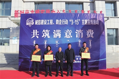 在苏尼特左旗“3·15”诚信助企主题活动现场,向诚信经营企业、诚信经营个体工商户颁发荣誉牌匾。
