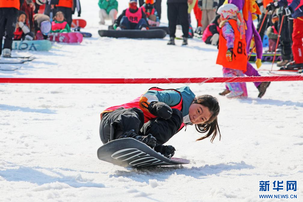 3月23日,在内蒙古自治区扎兰屯金龙山滑雪场,滑雪爱好者参加钻杆、猛龙过江趣味竞赛。韩颖群 摄