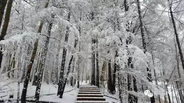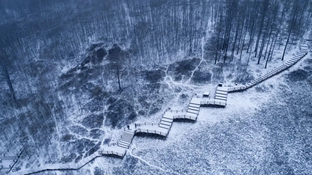 这里的冬天宛如一个冰雪仙境。银装素裹的树木与湛蓝天空相映成趣,沿着栈道漫步,仿佛置身于一幅天然的水墨画中。