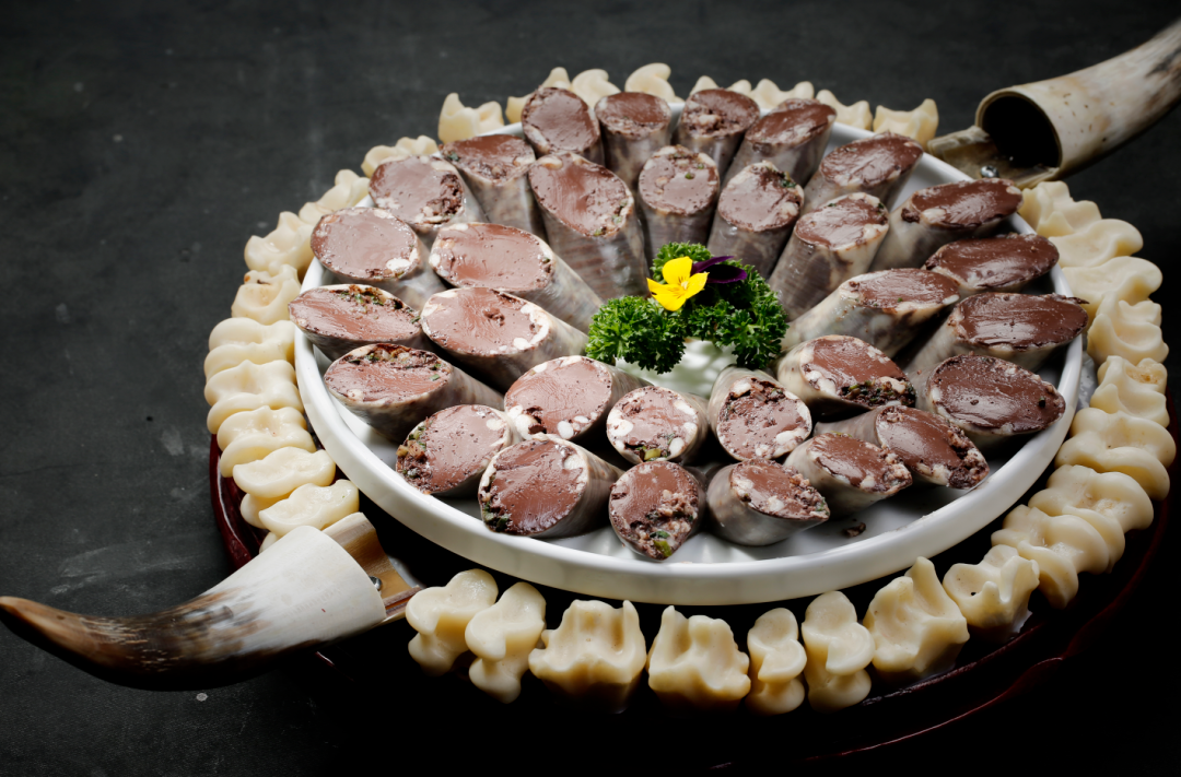 呼伦贝尔羊血肠,采用新鲜干净羊血灌入清理好的羊肠内,马上水煮,出锅即食,蘸蒜醋汁,香嫩弹滑,满嘴生香,别有风味。