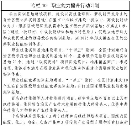 内蒙古自治区“十四五”就业促进规划