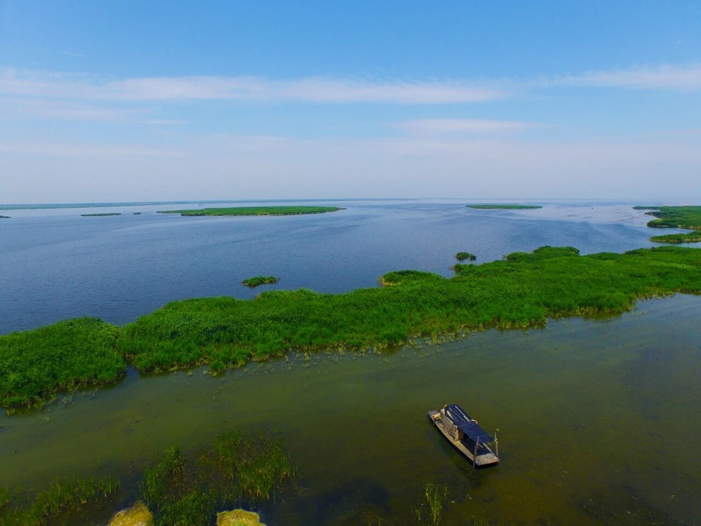 乌梁素海湿地位于乌拉特前旗境内,南北长35~40公里,东西宽5~10公里,水域面积293平方公里,最大水深约4米,库容约4亿立方米,是全球同纬度干旱半干旱地区最大的功能性湿地,承担着黄河水量调节、水质净化、防凌防汛等重要功能,被称为黄河生态安全的“自然之肾”。2023年被列入国家重要湿地名录。
