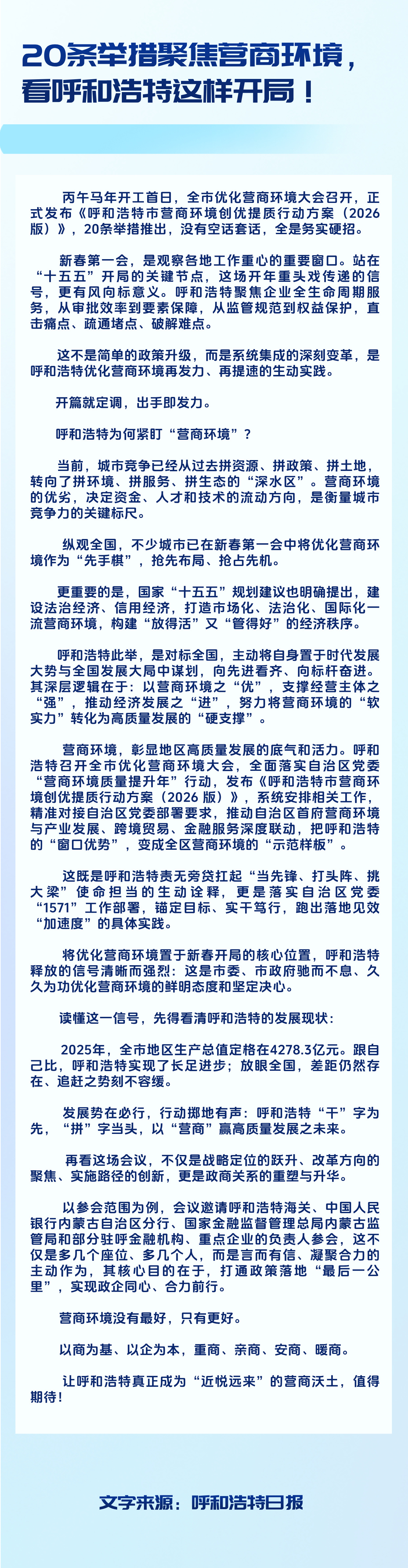 20条举措聚焦营商环境,看呼和浩特这样开局!