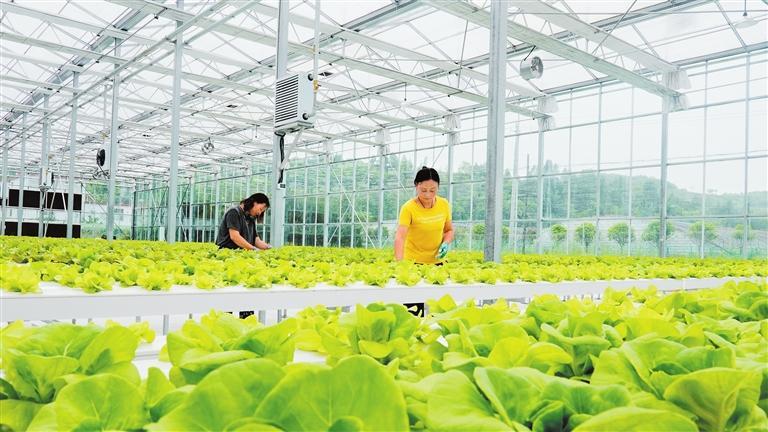 徽县泥阳镇省级现代农业产业园的智能温室内,工作人员查看蔬菜长势。新甘肃·甘肃日报通讯员 高琼