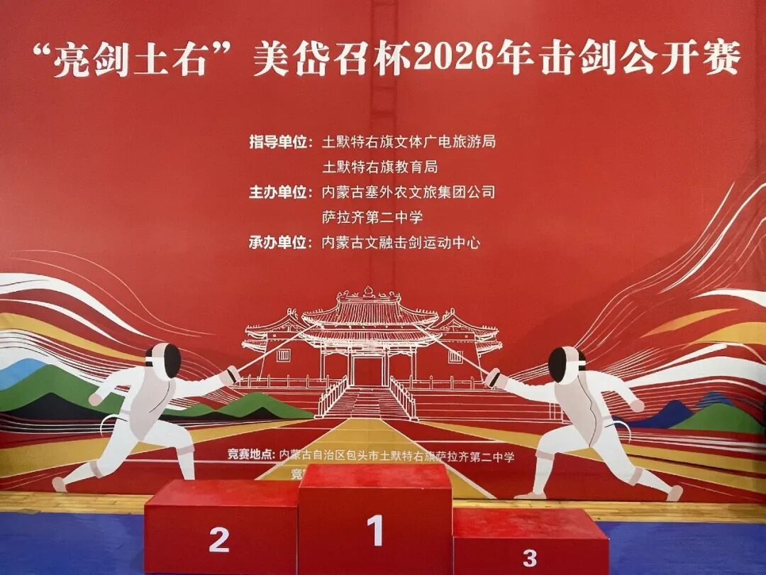 作为土右旗“文体旅”融合发展的重点活动与生动实践,本届赛事既为全国击剑爱好者搭建了切磋技艺、交流提升的专业舞台,更以沉浸式文化体验为八方来客开启了领略土右魅力的特色旅程。赛事创新性地将美岱召景区元素融入奖牌设计,让竞技荣誉与文化记忆深度绑定,不仅推动击剑运动与地方特色文化深度交融、丰富了群众的精神文化生活,更成为展示土右旗宜居宜业宜游形象的亮丽名片,进一步提升了土右旗的城市影响力与美誉度,也为击剑运动的推广普及注入了新动力,彰显出土右旗依托特色文旅资源、打造体育赛事品牌的坚定决心与广阔前景。