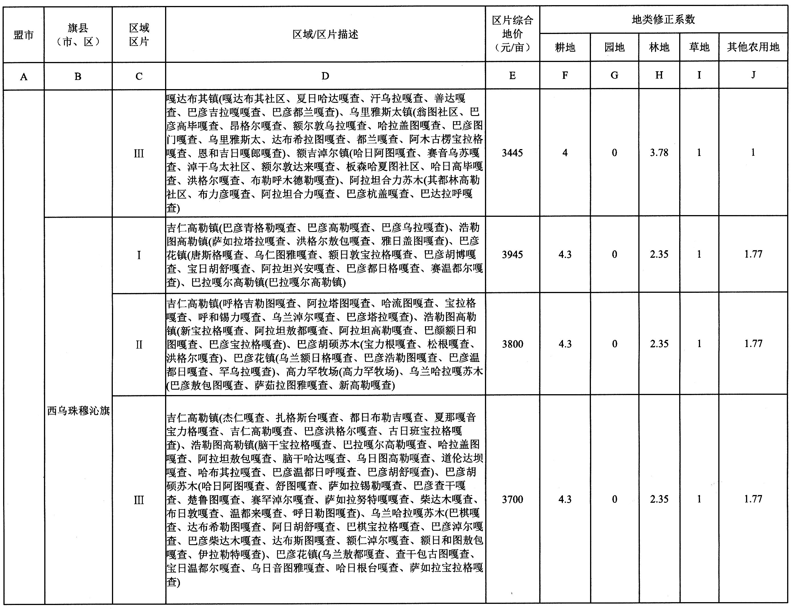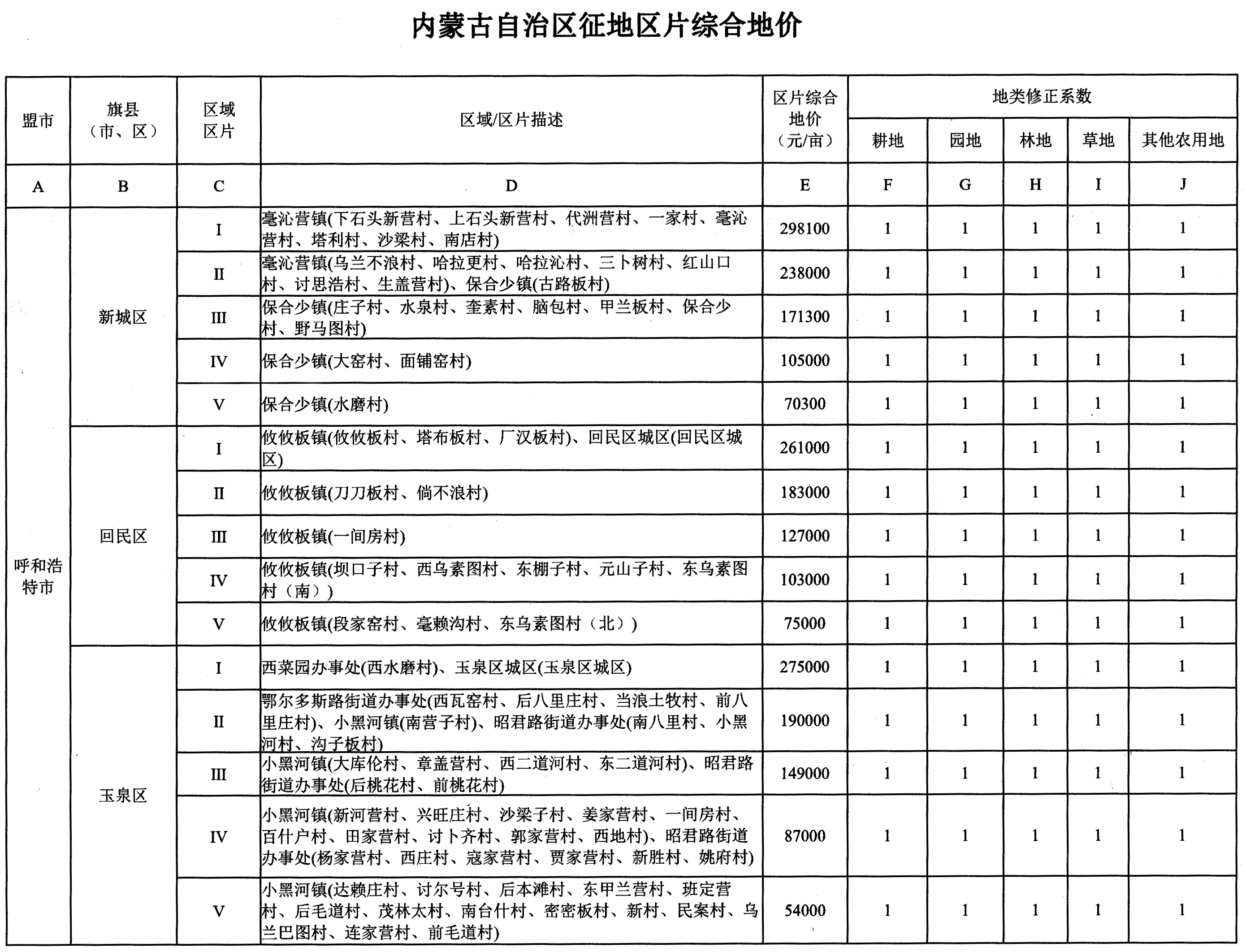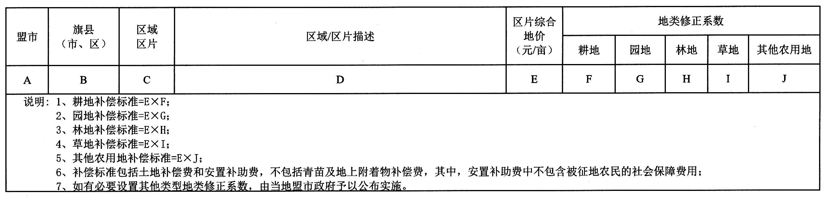征收农用地按区片综合地价进行补偿,是国家对被征地农牧民长远利益保护的重大举措,也是推进土地使用制度改革的重要举措,对于进一步加强征地补偿安置工作,让被征地农牧民分享土地增值“红利”,切实保护被征地农牧民合法权益,维护社会和谐稳定,保障自治区经济高质量发展,具有十分重要的意义。为深入贯彻实施新修正的《中华人民共和国土地管理法》(以下简称《土地管理法》),进一步做好我区征地补偿安置工作,经自治区人民政府同意,现将《内蒙古自治区征地区片综合地价》予以公布,并提出以下要求,请一并贯彻落实。