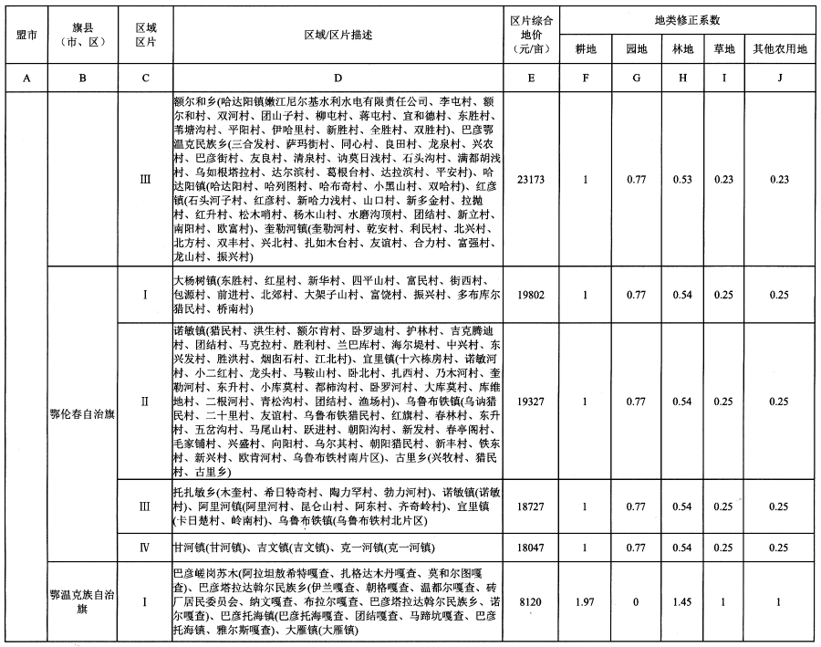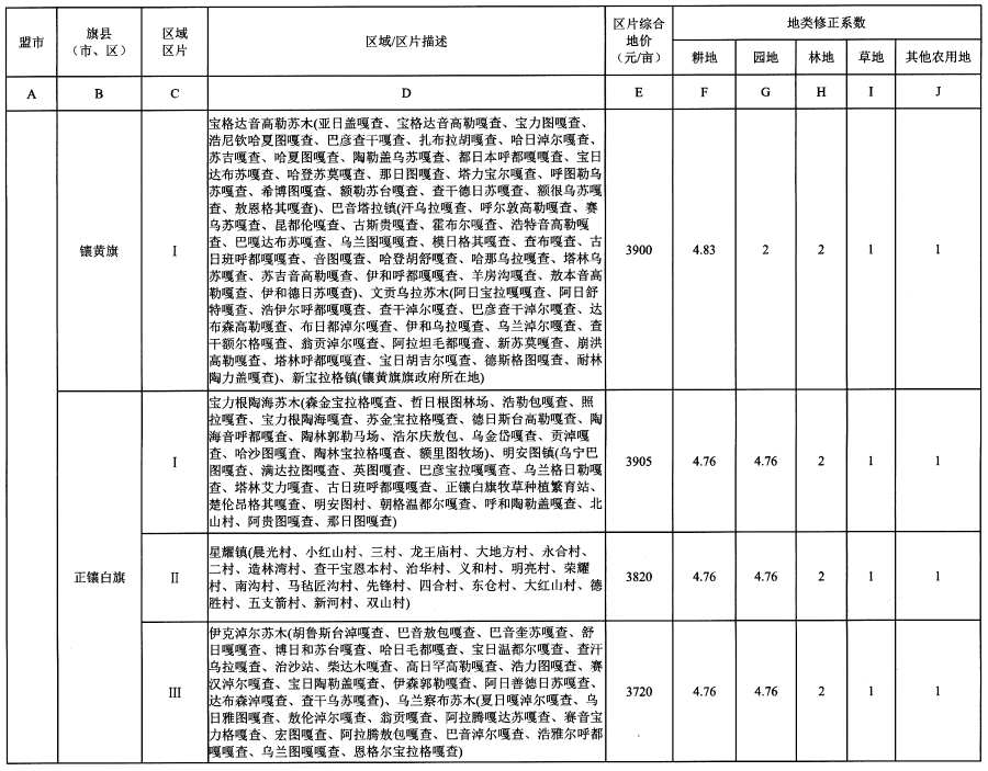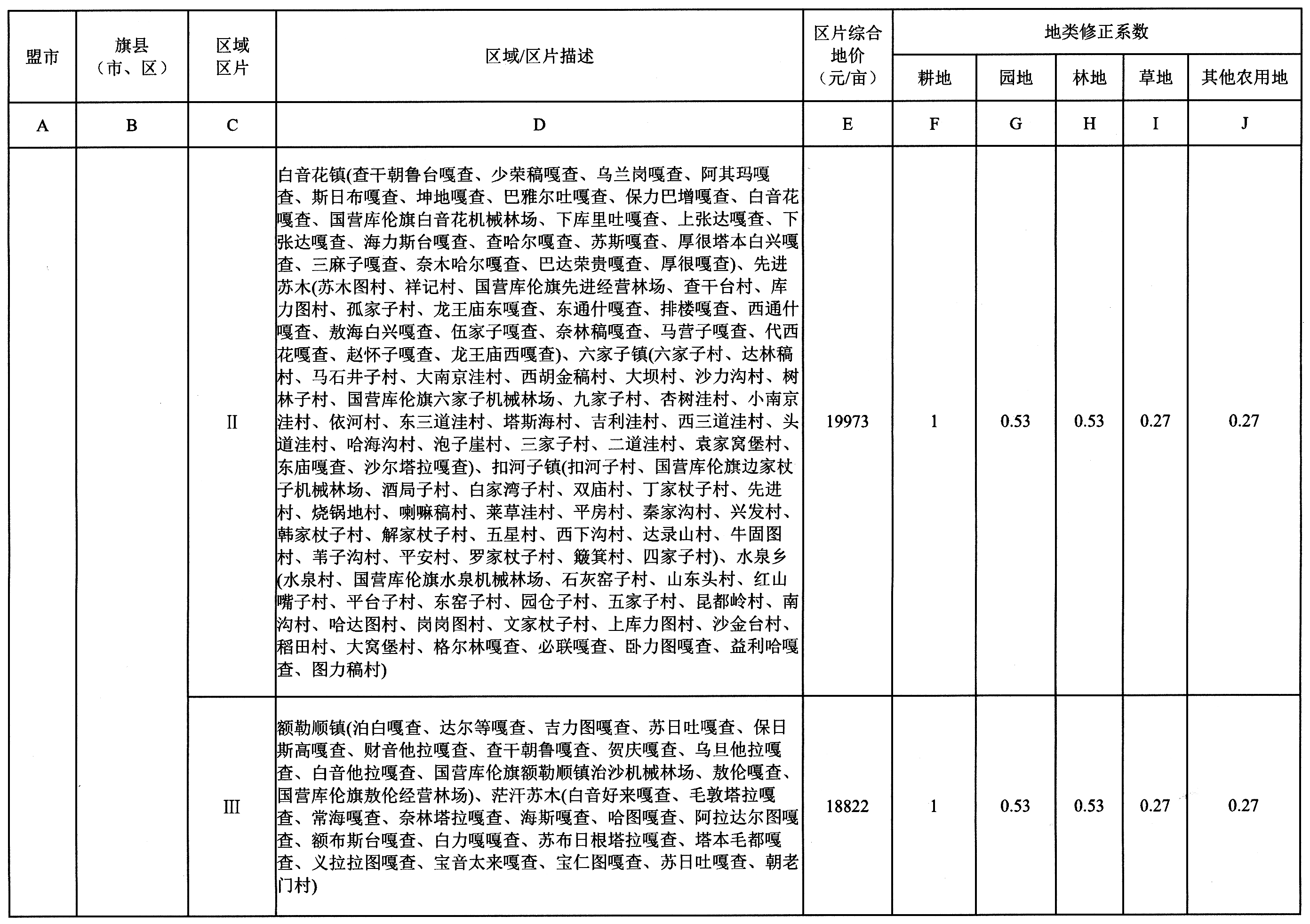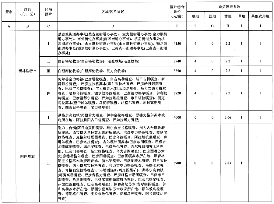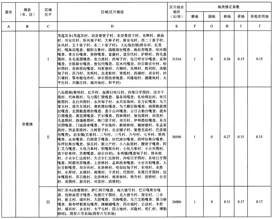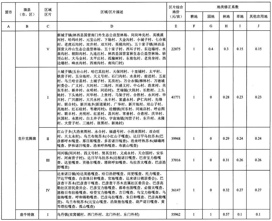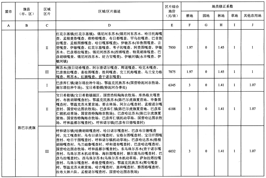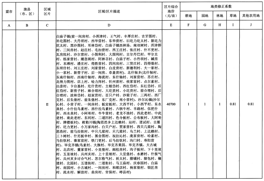 此次公布中未明确具体区片的苏木乡镇或者嘎查村组,征地补偿标准按该苏木乡镇所属旗县(市、区)或者该嘎查村组所属苏木乡镇的最高补偿标准执行。征收涉及永久基本农田的,按照所属旗县(市、区)最高标准补偿执行。