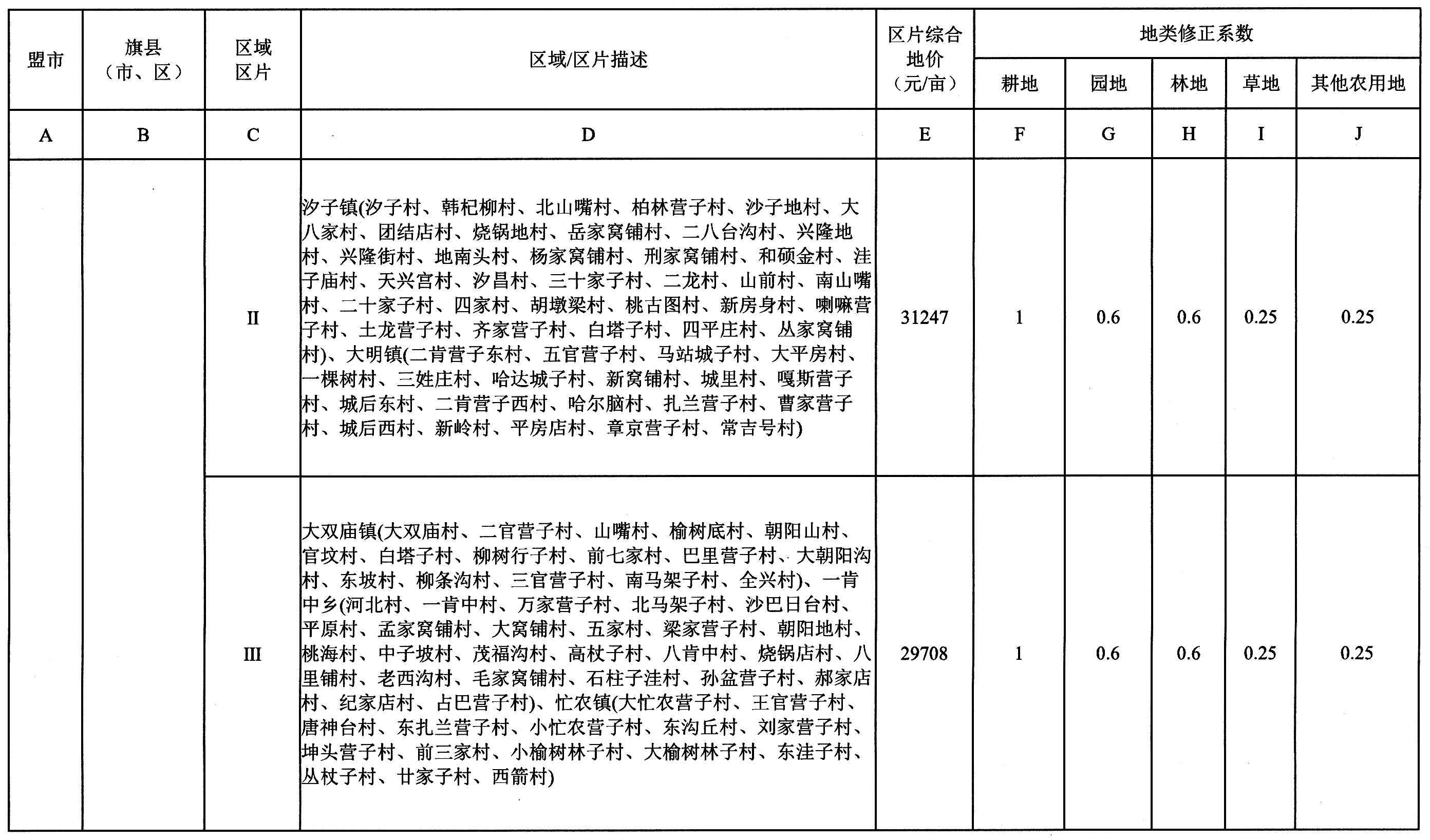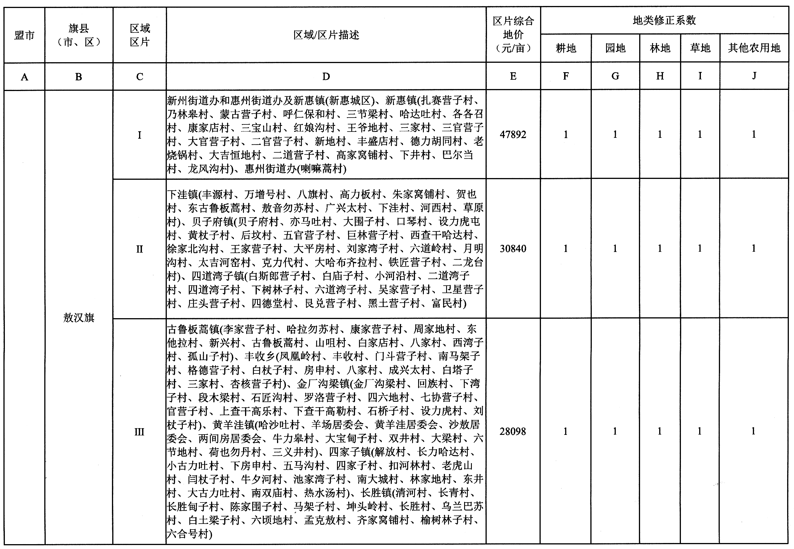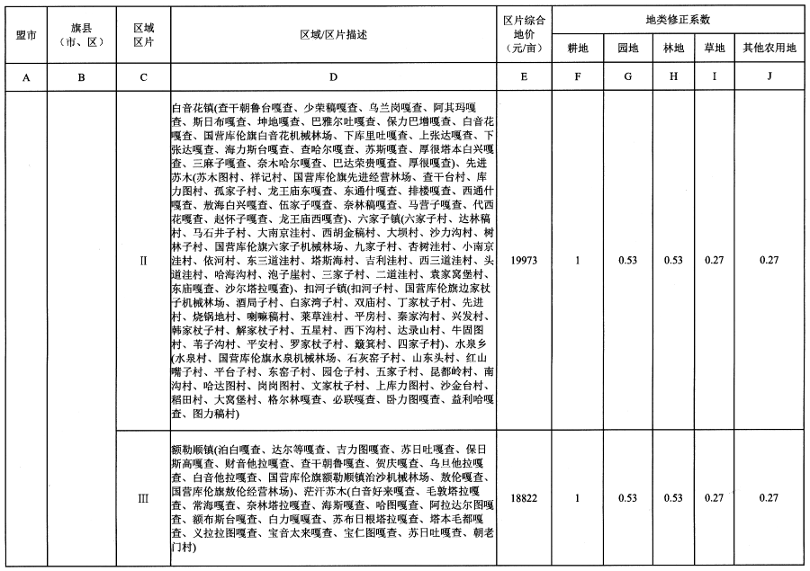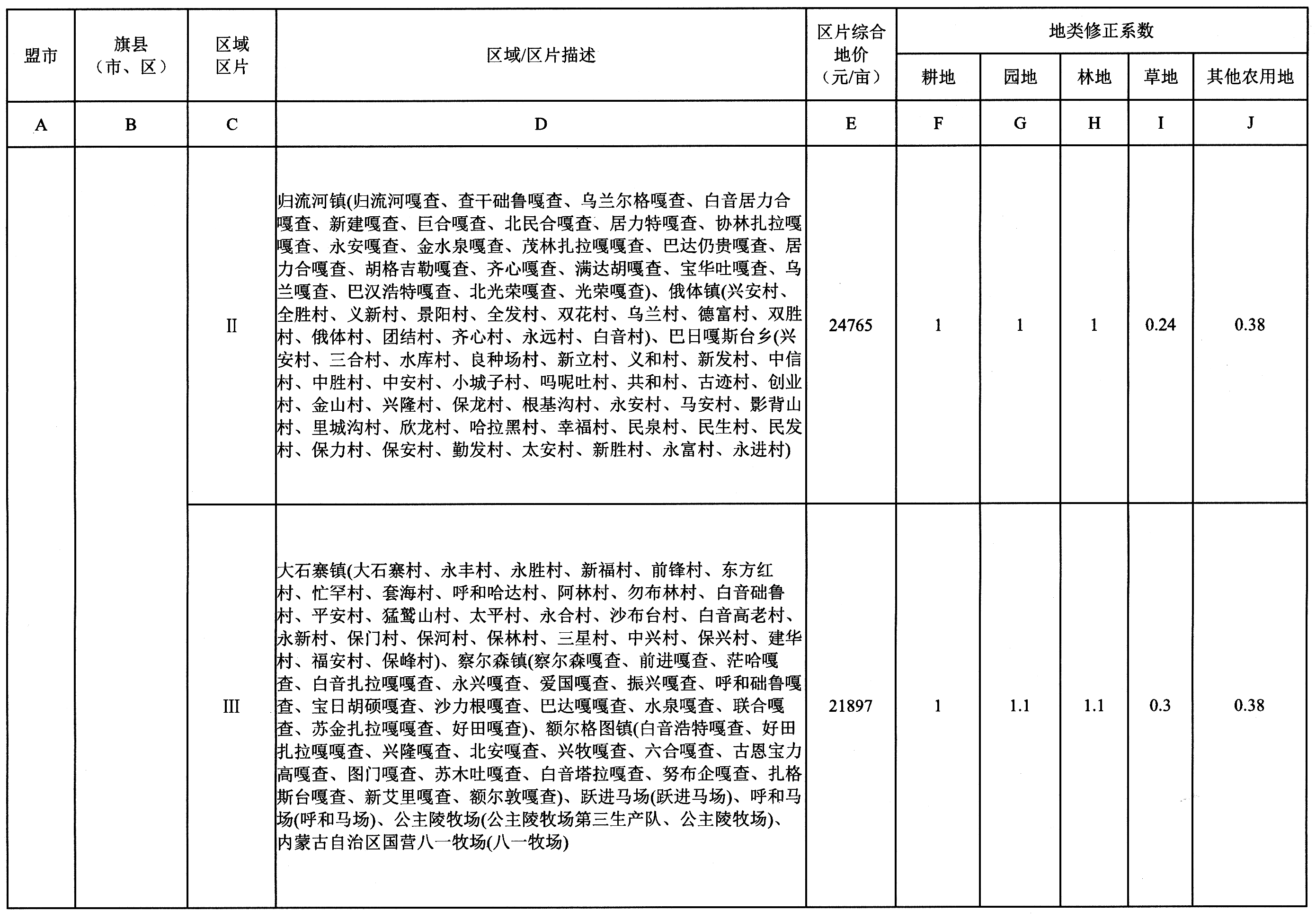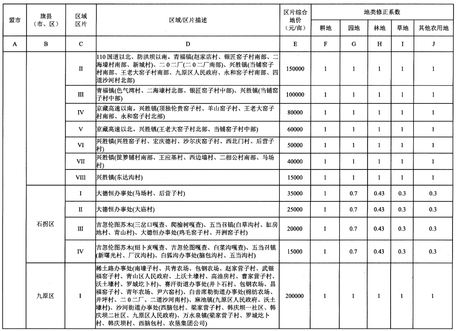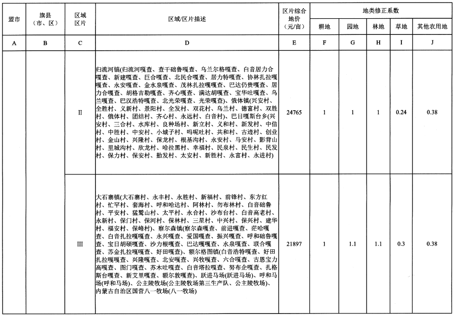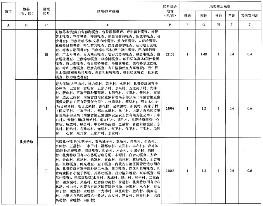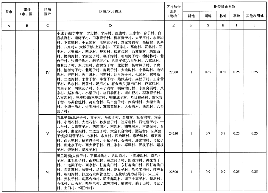 此次公布中未明确具体区片的苏木乡镇或者嘎查村组,征地补偿标准按该苏木乡镇所属旗县(市、区)或者该嘎查村组所属苏木乡镇的最高补偿标准执行。征收涉及永久基本农田的,按照所属旗县(市、区)最高标准补偿执行。