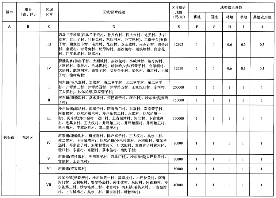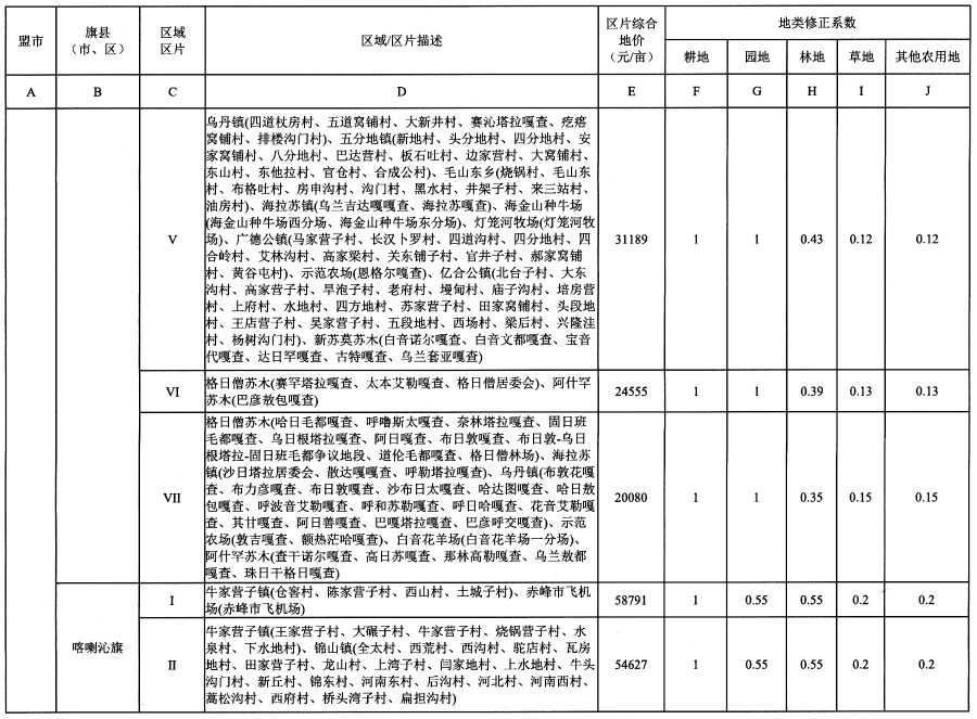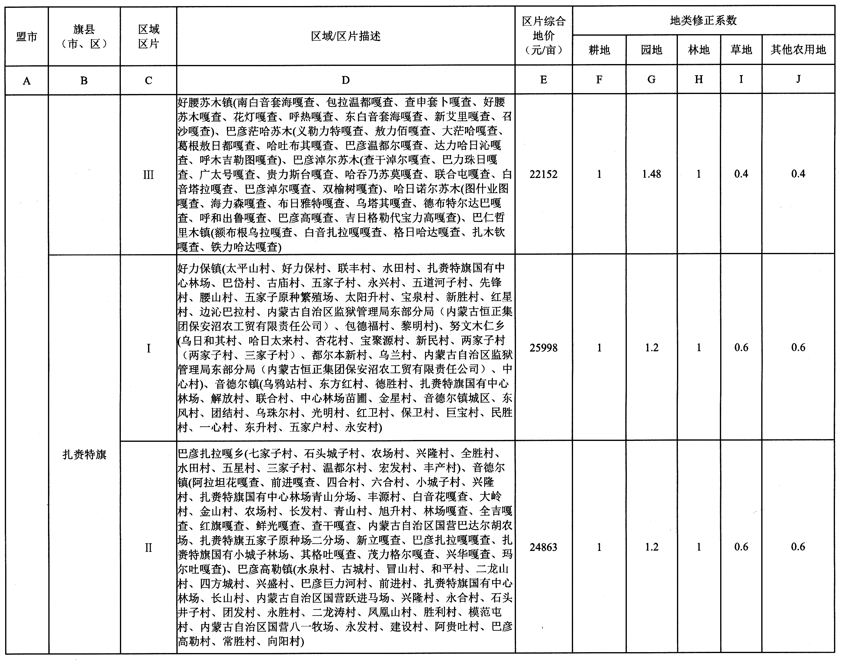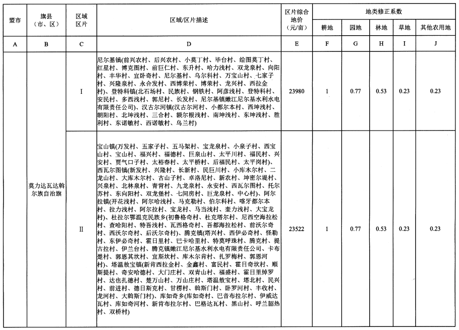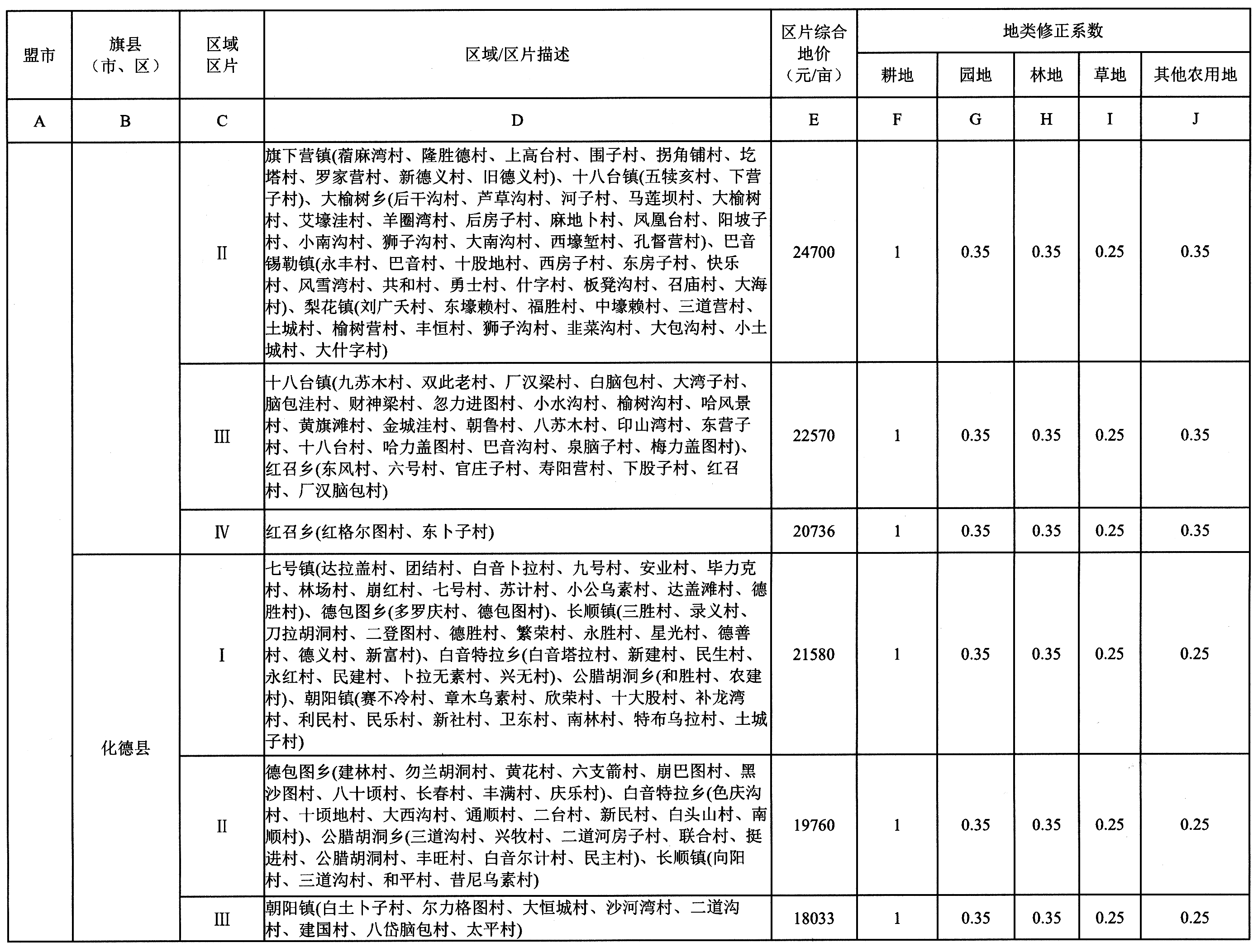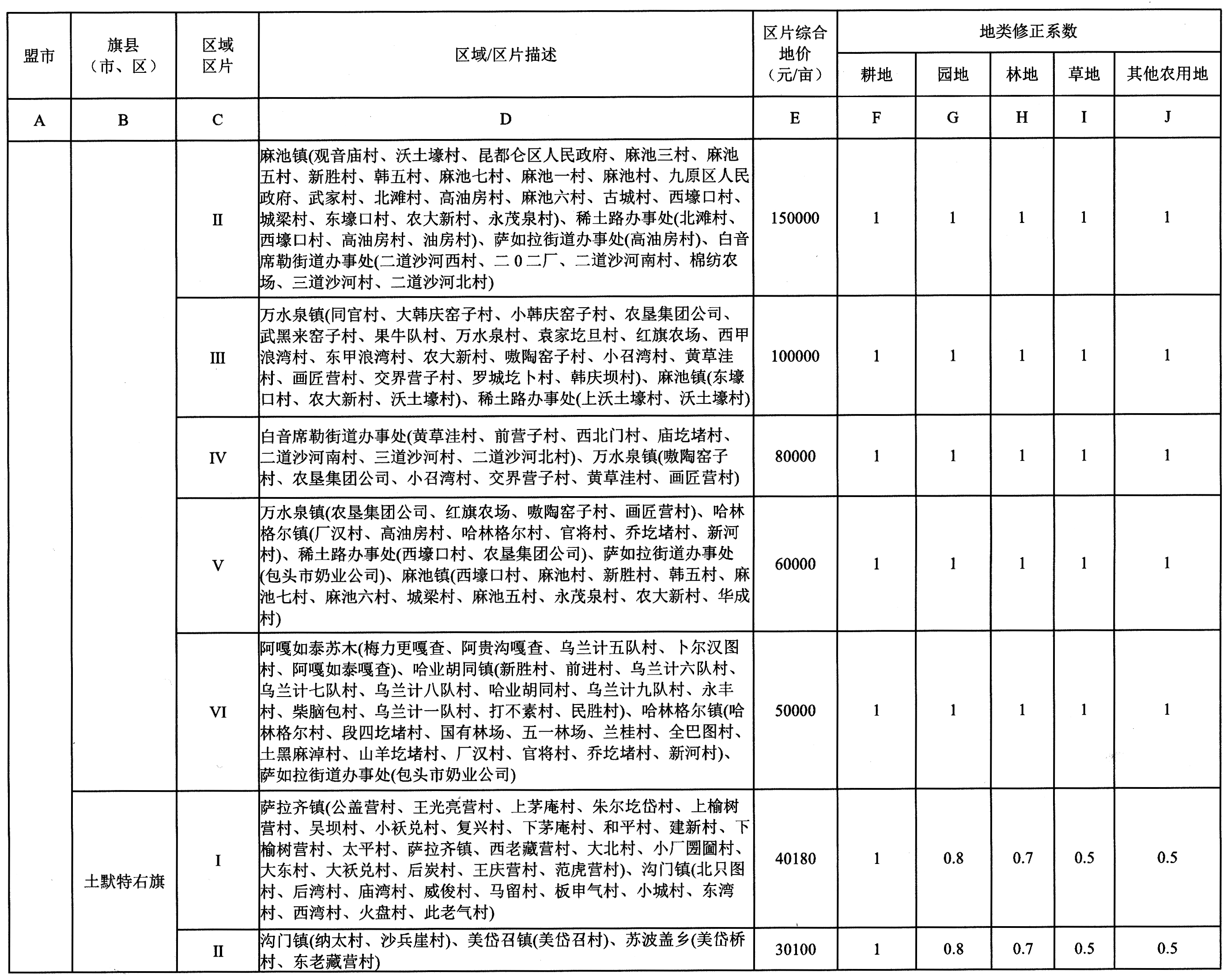 此次公布中未明确具体区片的苏木乡镇或者嘎查村组,征地补偿标准按该苏木乡镇所属旗县(市、区)或者该嘎查村组所属苏木乡镇的最高补偿标准执行。征收涉及永久基本农田的,按照所属旗县(市、区)最高标准补偿执行。