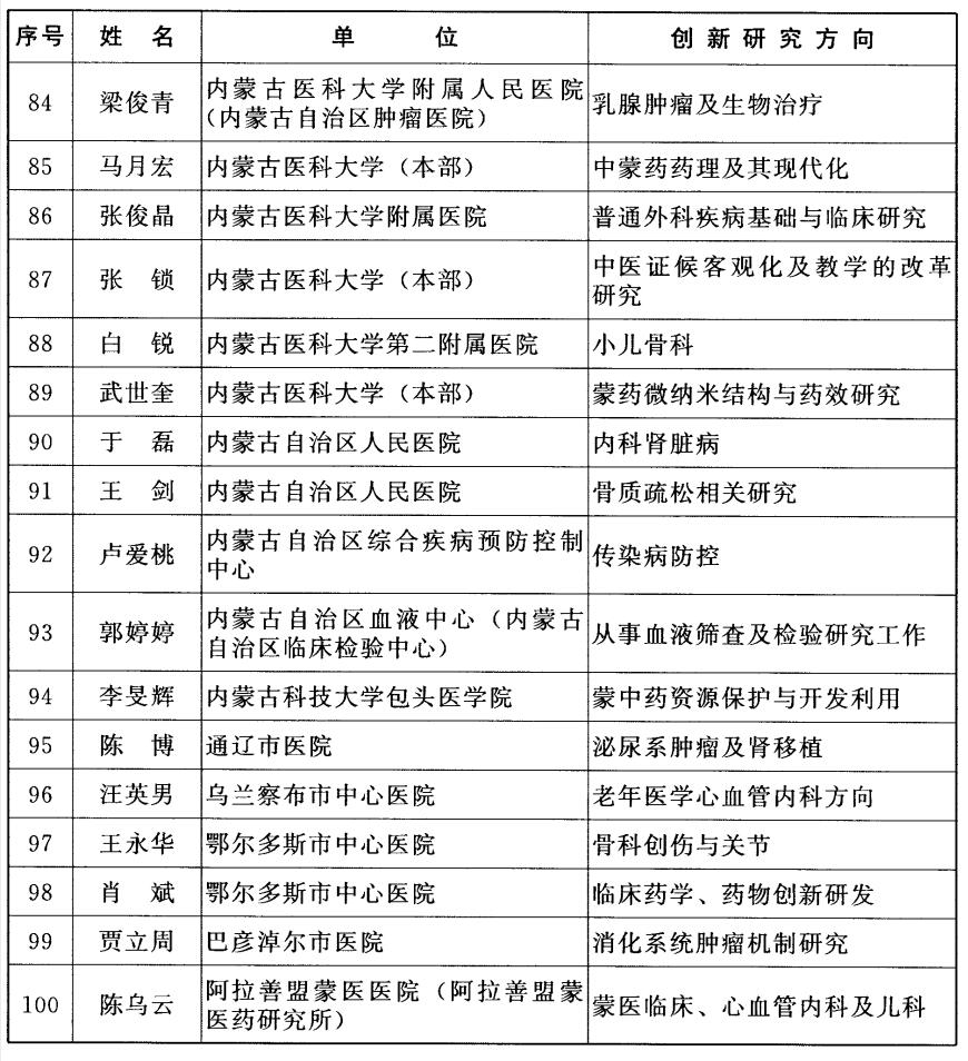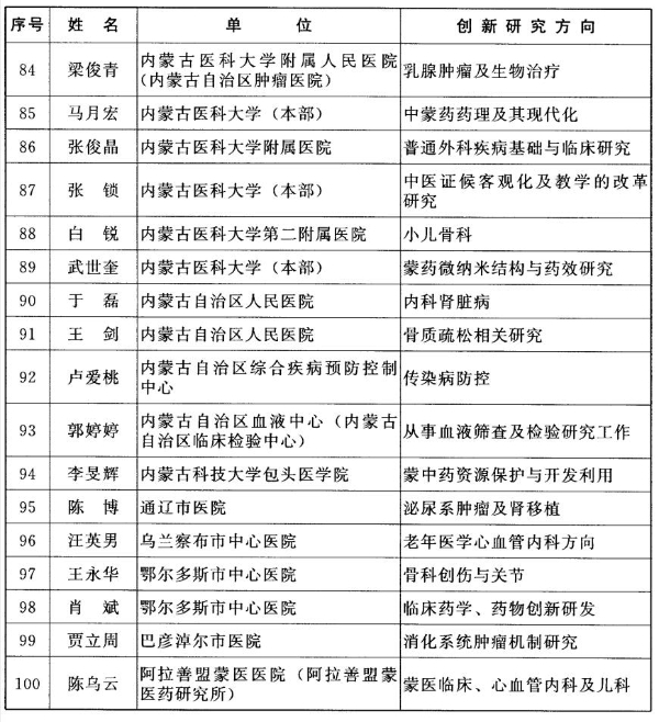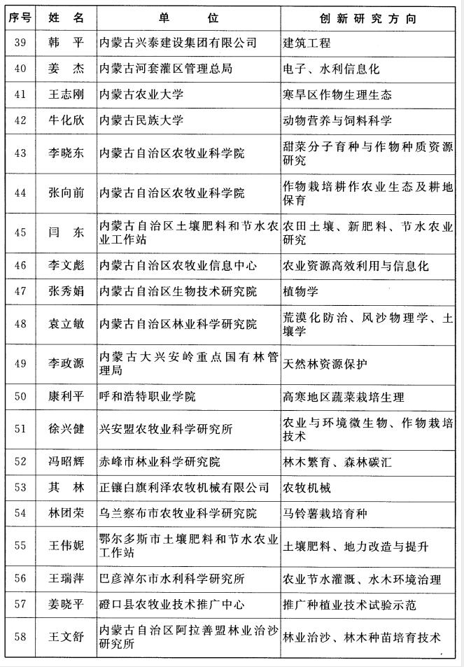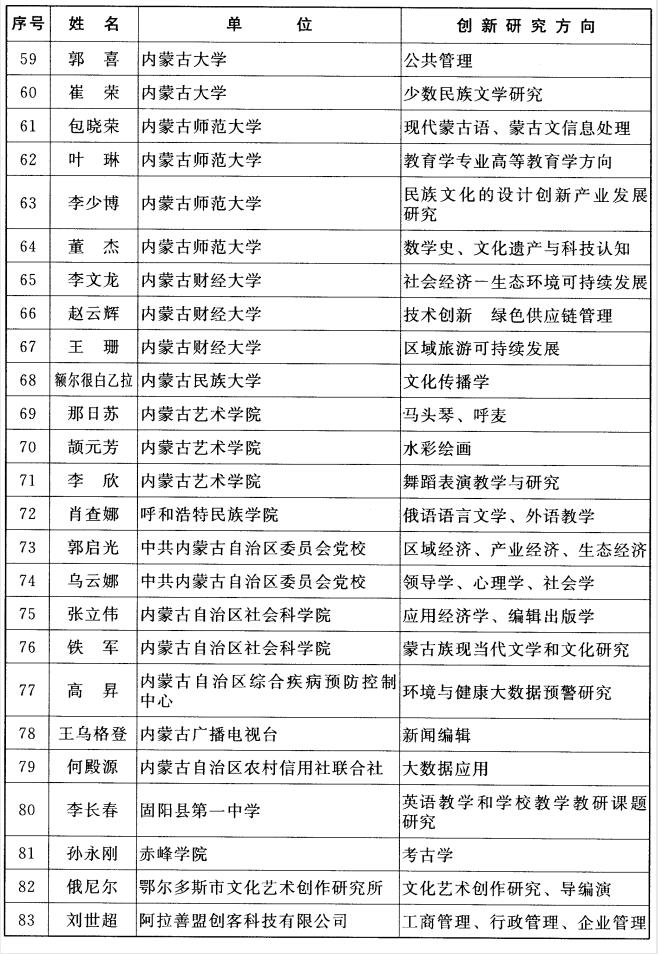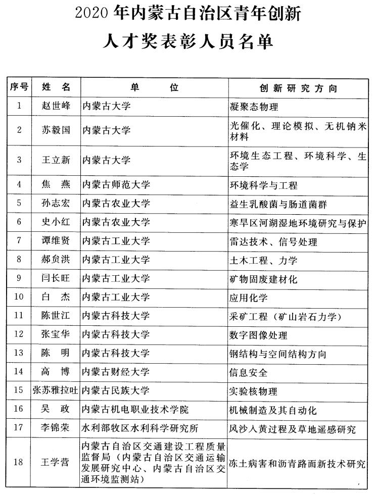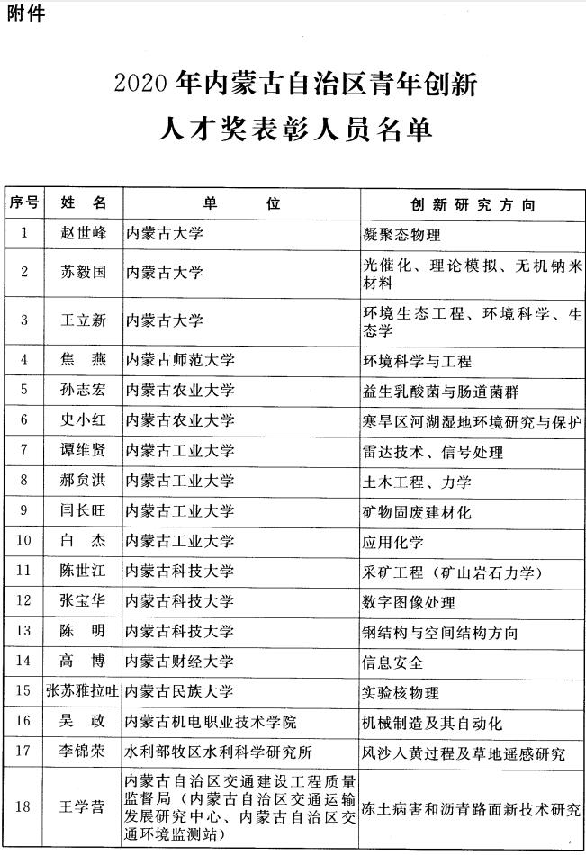 附件:2020年内蒙古自治区青年创新人才奖表彰人员名单