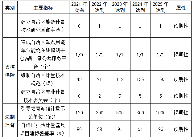内蒙古自治区“十四五”计量发展主要指标