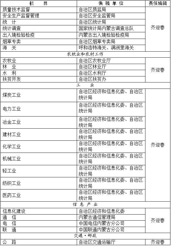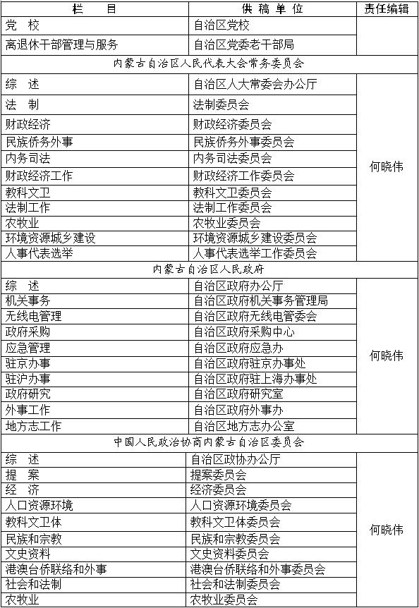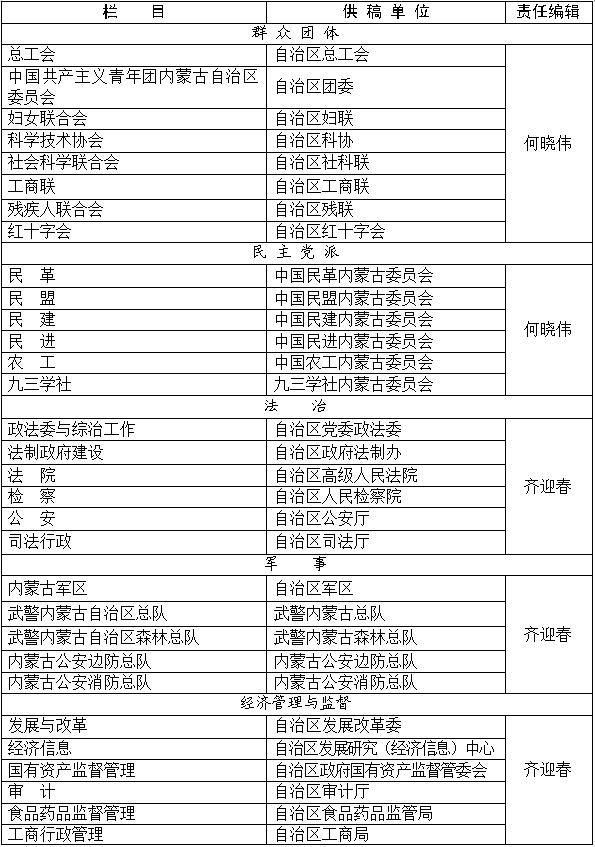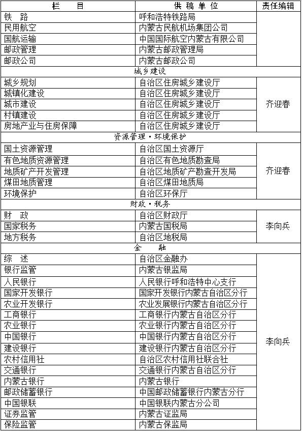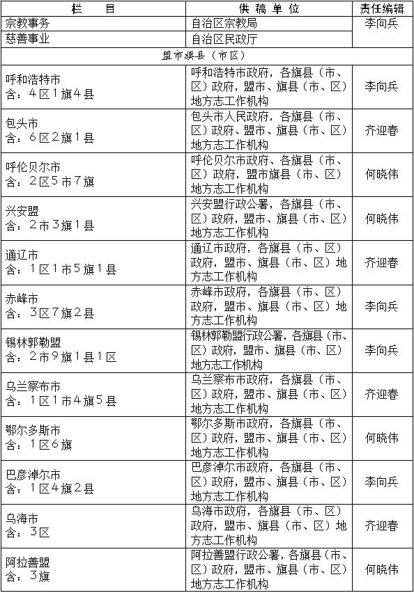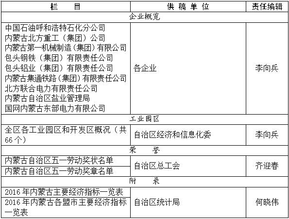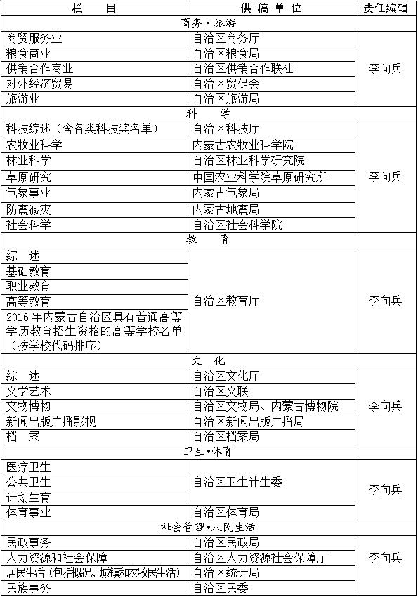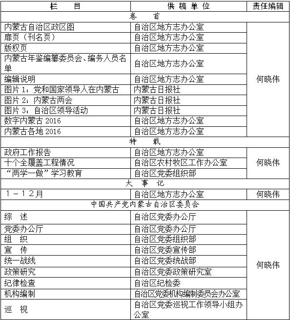 《内蒙古年鉴》2017卷栏目及组稿任务分配表