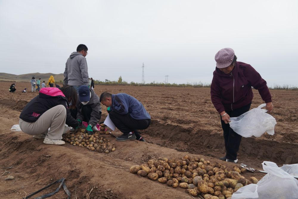 游客正在装捡出来的土豆。(受访单位供图)