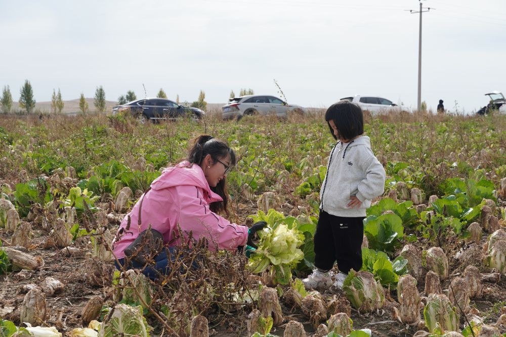 游客正在捡拾秋收后地里剩下的白菜。(受访单位供图)