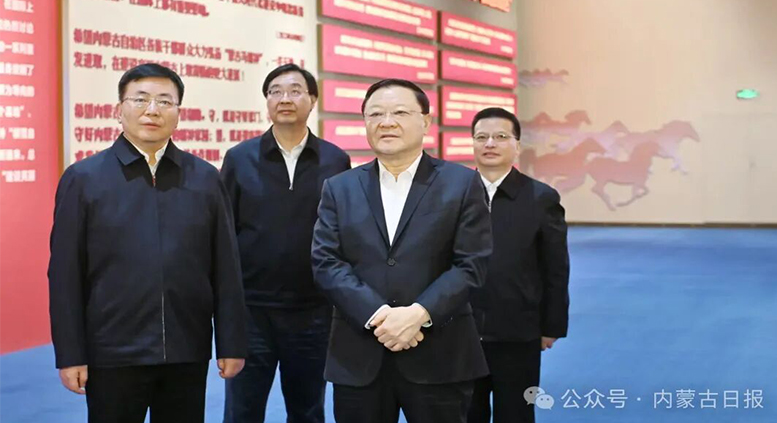 10月7日,自治区党委书记、人大常委会党组书记王伟中来到内蒙古展览馆,分别参观“牢记嘱托 感恩奋进——办好两件大事 奋力书写中国式现代化内蒙古新篇章”、“绿色长城 生态奇迹——内蒙古防沙治沙和‘三北’工程攻坚战”主题展。自治区党委副书记、自治区人民政府党组书记、呼和浩特市委书记包钢参加。